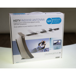 From the box: This indoor antenna is right for you if you live in an urban or suburban area that is close to the broadcast tower. Suggested range is 0-15 miles. Requires a television with either a built in tuner or a set-top HD receiver. Receives both VHF and UHF channels. New old stock, box in great condition, item is new.
